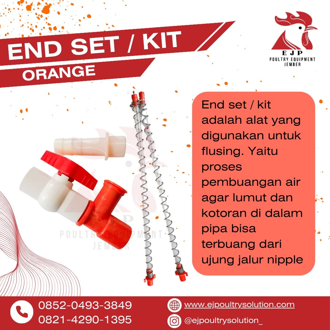 -> End Set/Kit adalah alat yang digunakan untuk flusing. Yaitu proses pembuangan air agar lumut atau kotoran di dalam pipa bisa keluar terbuang pada ujung jalur nippel.