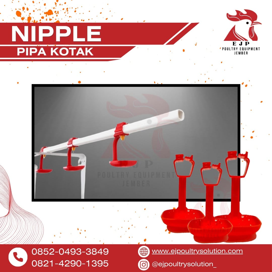 -> Untuk tempat minum ada tempat minum manual ada juga tempat minum otomatis. Tempat minum ayam memiliki karakter yang berbeda, seperti tempat minum ayam manual yang harus sering diganti jika sudah habis dan tempat minum ayam otomatis yang biasanya memiliki lebih banyak keunggulan. Nipple seperti sebuah tempat minum dimana terdapat alas untuk menampung air yang di ambil dari ujung tempat keluar airnya. Hal ini bertujuan agar air tidak langsung jatuh ke dalam litter ayam yang dapat menyebabkan becek dan amonia yang naik yang berdampak buruk pada ayam.