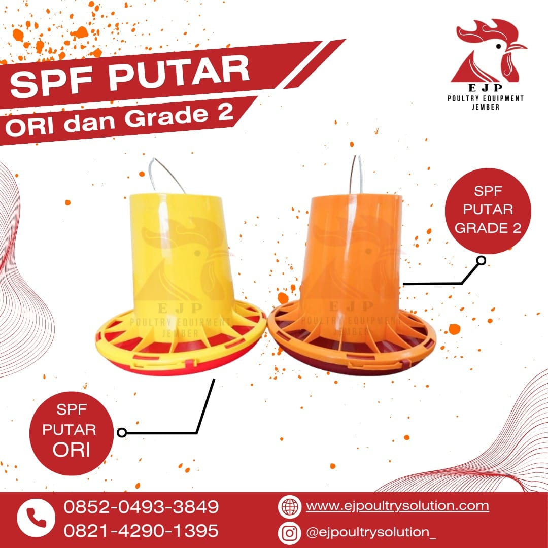 ->Tempat pakan ayam (SPF PUTAR) adalah salah satu alat yang diperlukan oleh seorang peternak ayam. Pada ayam broiler menggunakan tempat pakan ayam khusus supaya ketika ayam makan tidak berceceran dan membuat kandang menjadi kotor.